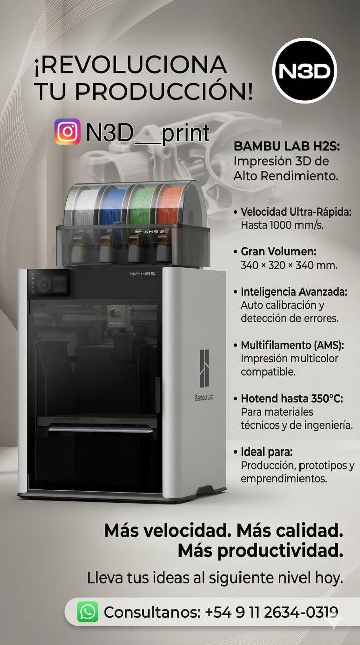 Bambu Lab H2S Combo es una impresora 3D de última generación pensada para profesionales, estudios de diseño y makers que buscan un volumen de impresión mayor, máxima velocidad y precisión con un alto nivel de automatización. Es la versión de una sola boquilla de la serie H2, pero equipada con el sistema AMS 2 Pro para impresión multicolor y multimaterial de forma automática. Gracias a su estructura robusta, control térmico avanzado e integración de inteligencia artificial, se posiciona como una de las opciones más completas para producción y prototipado profesional.